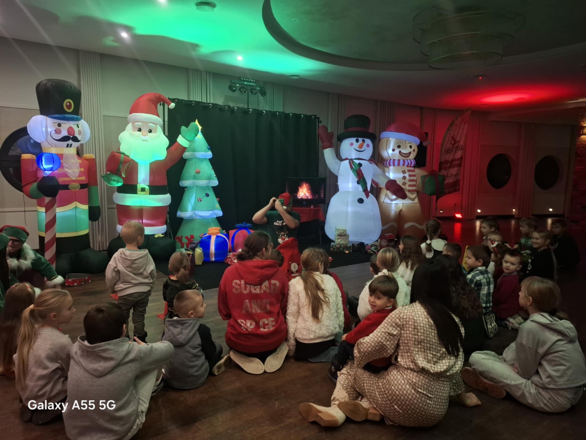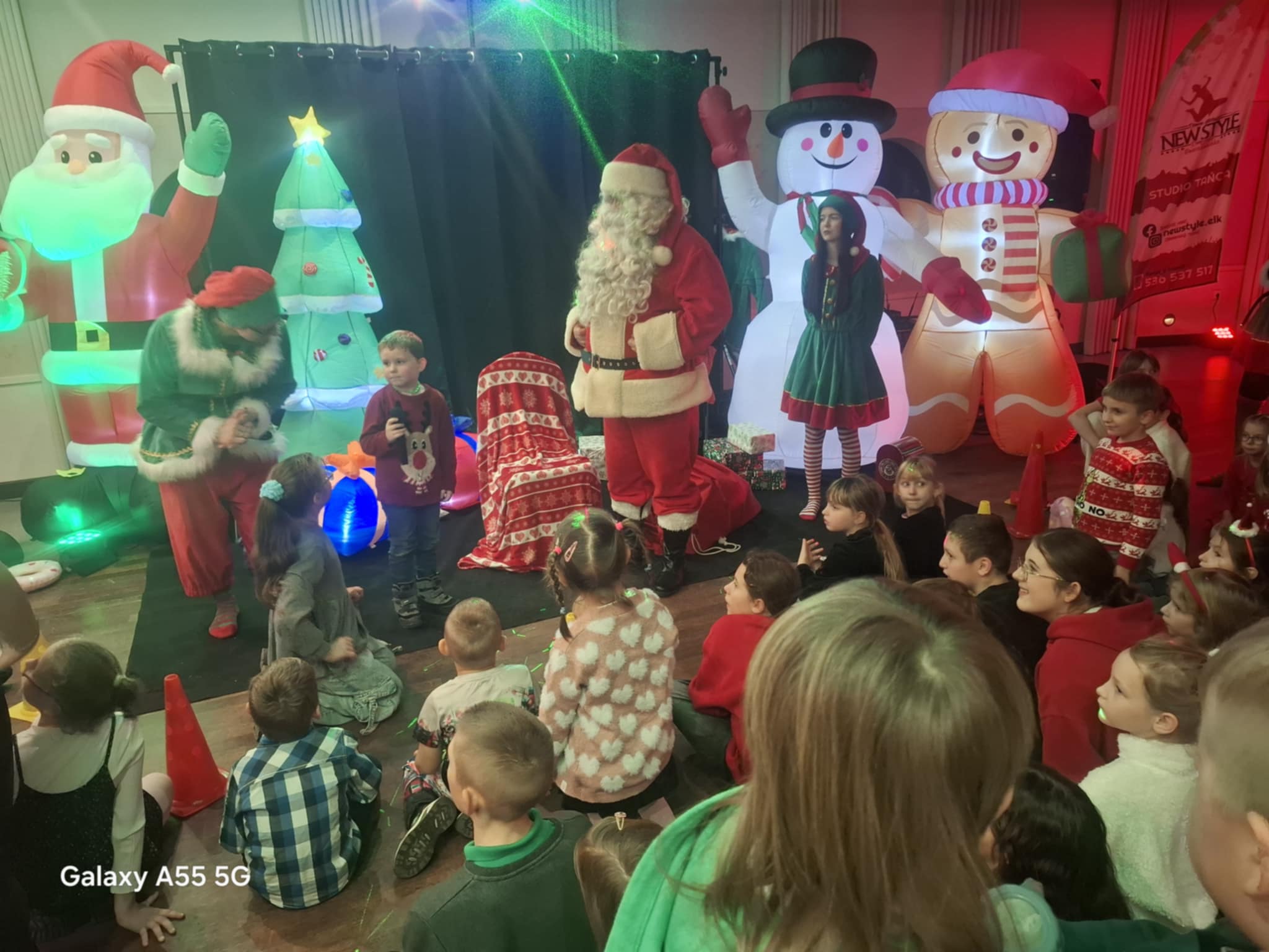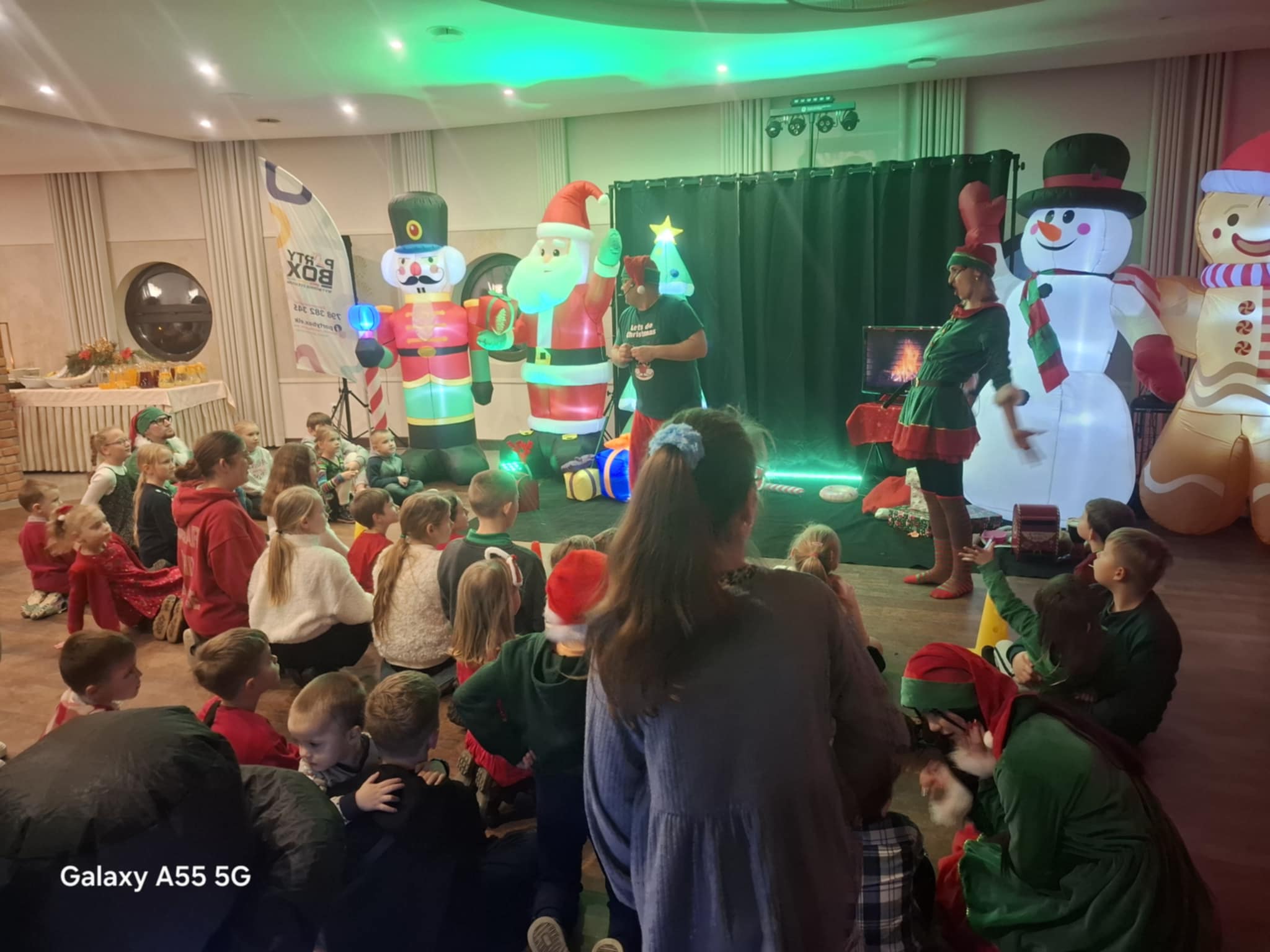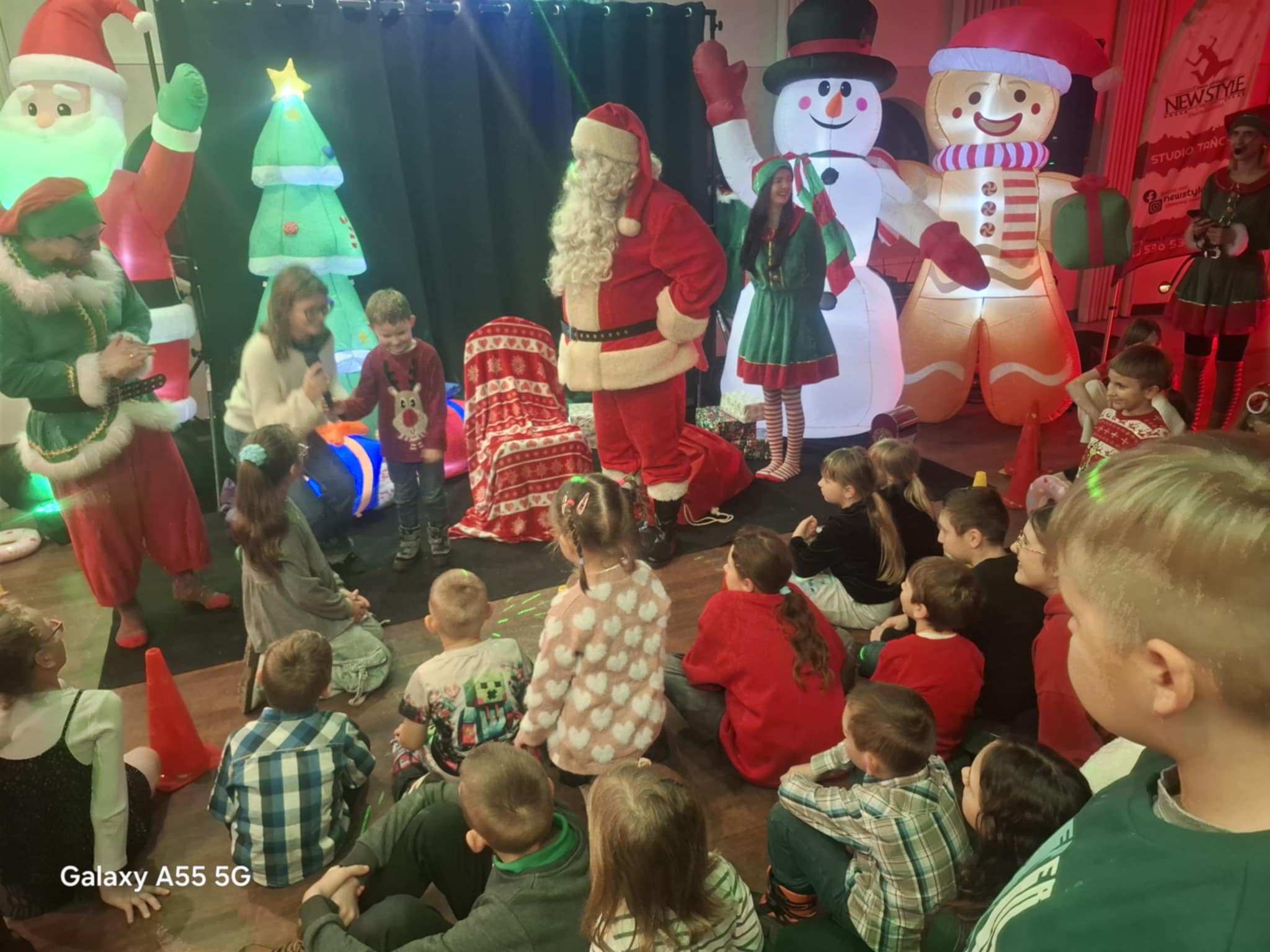 Przybyłe dzieci odwiedził Mikołaj z upominkami, w świąteczną atmosferę wprowadziły gości piosenki, kolędy i prowadząca.