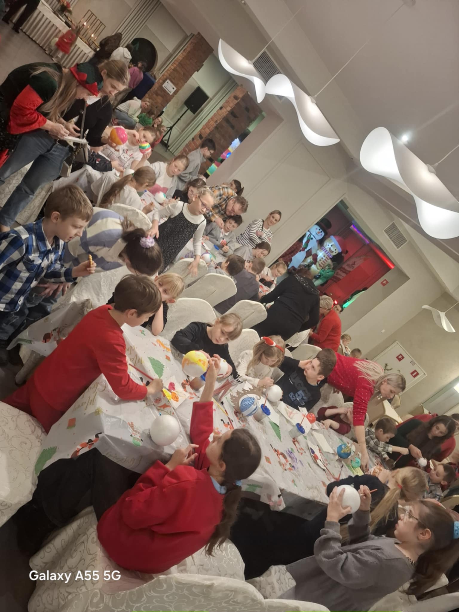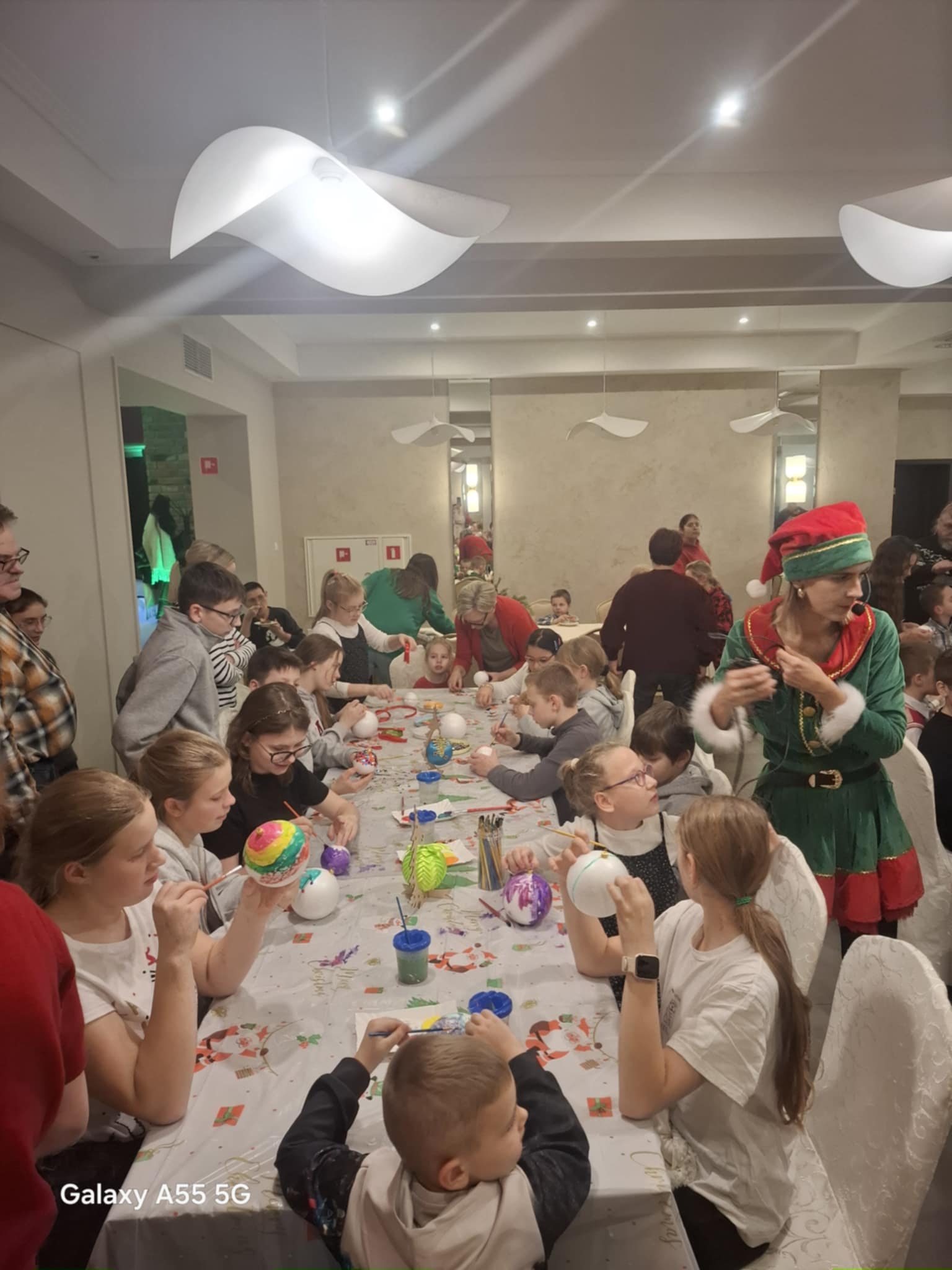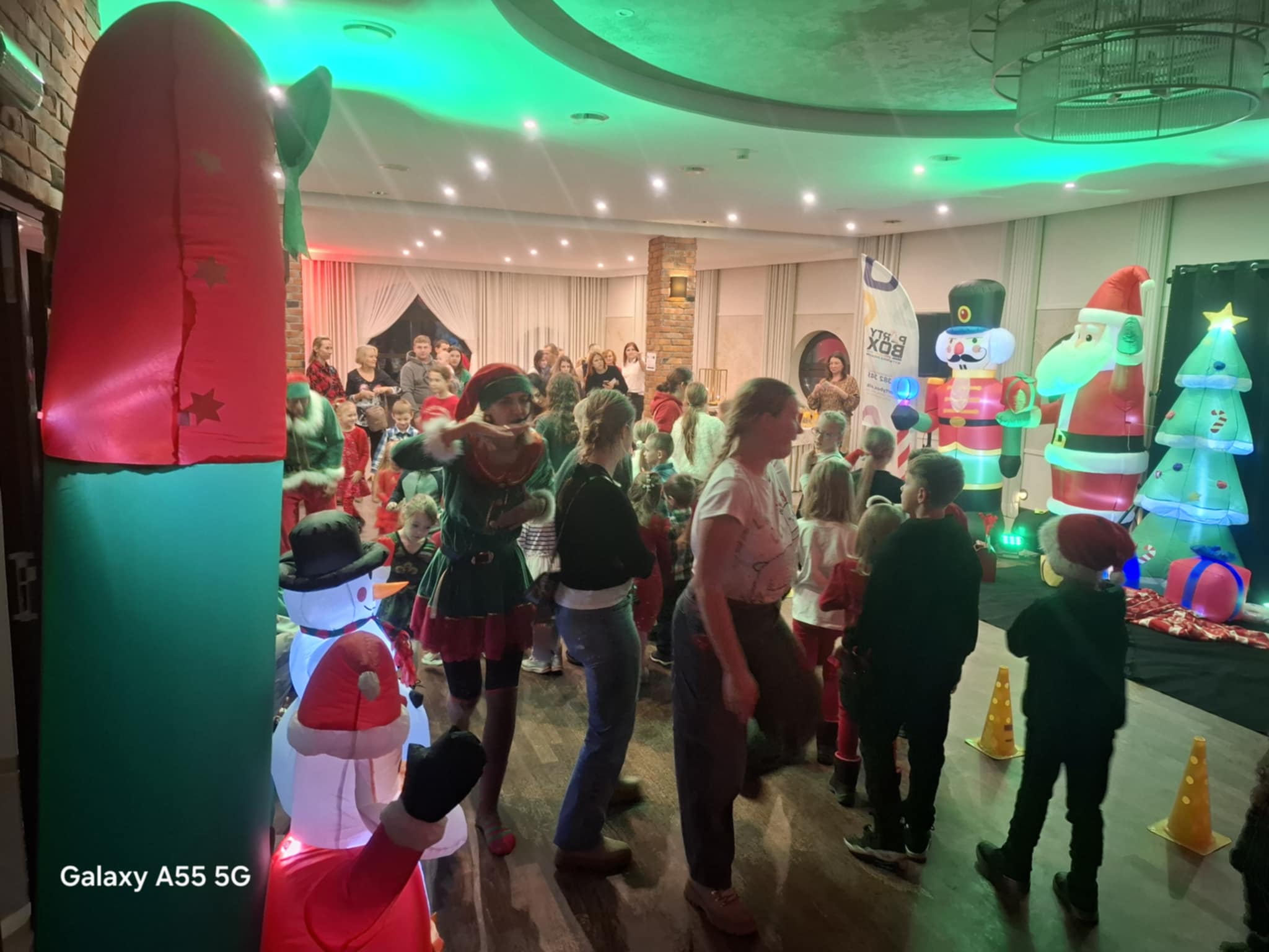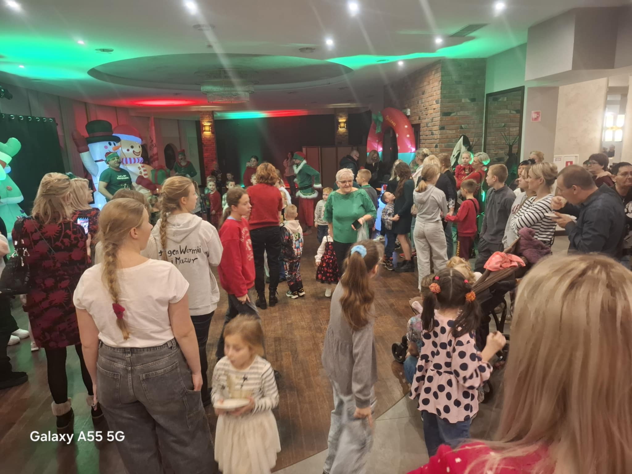 Przybyłe dzieci odwiedził Mikołaj z upominkami, w świąteczną atmosferę wprowadziły gości piosenki, kolędy i prowadząca.